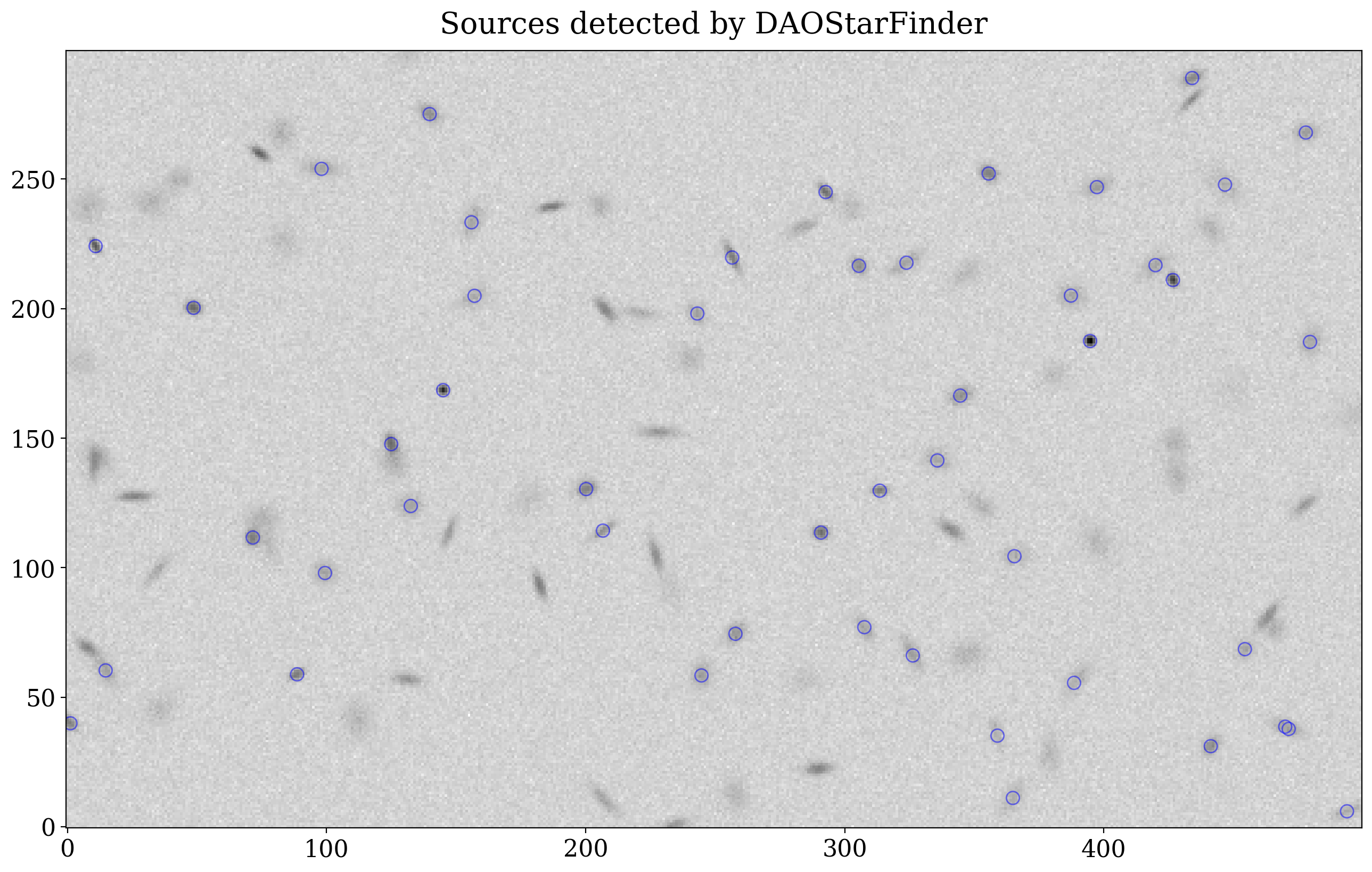 Text(0.5, 1.0, 'Sources detected by DAOStarFinder')